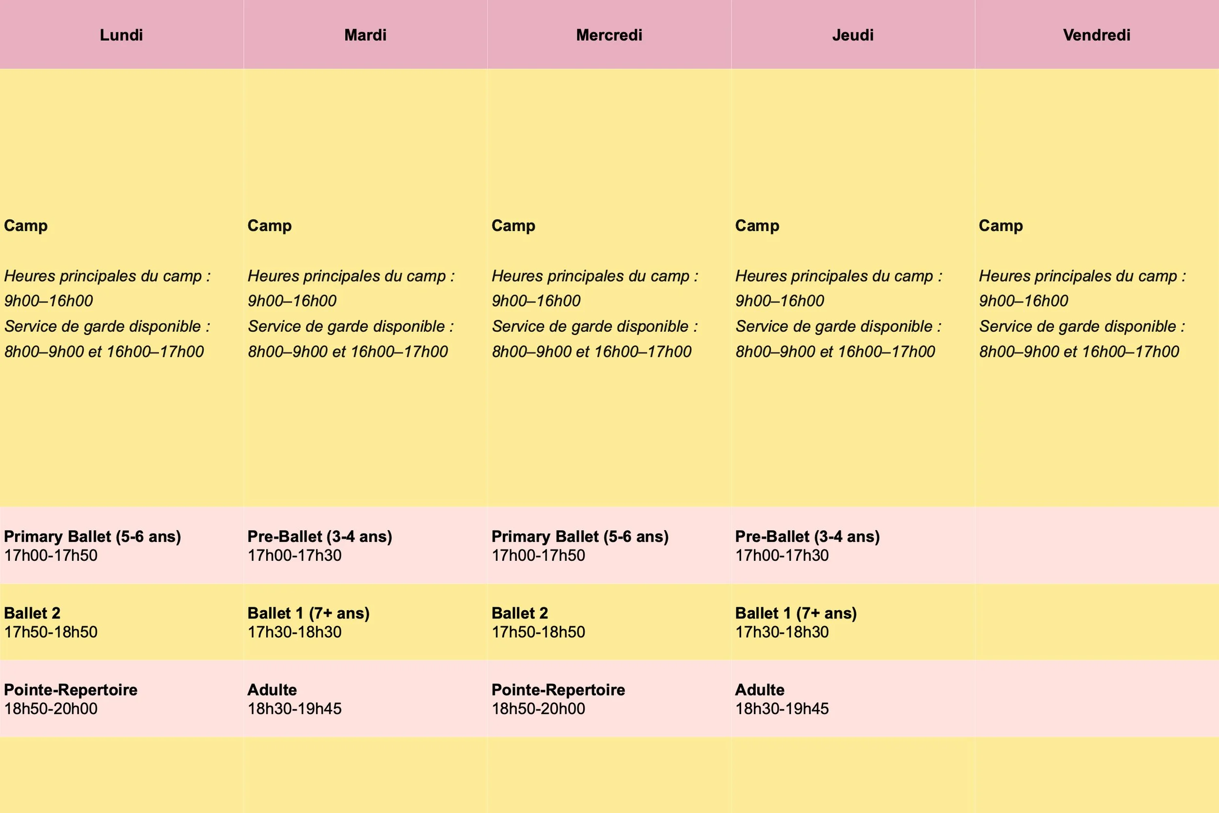 École et camp de ballet pour enfants et adultes à Westmount-Montréal